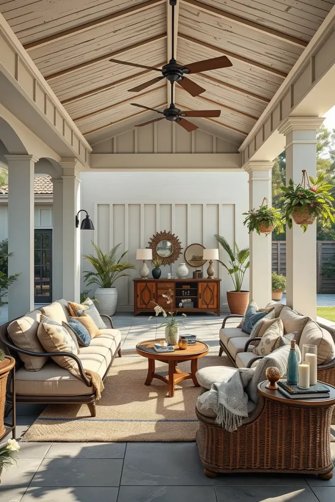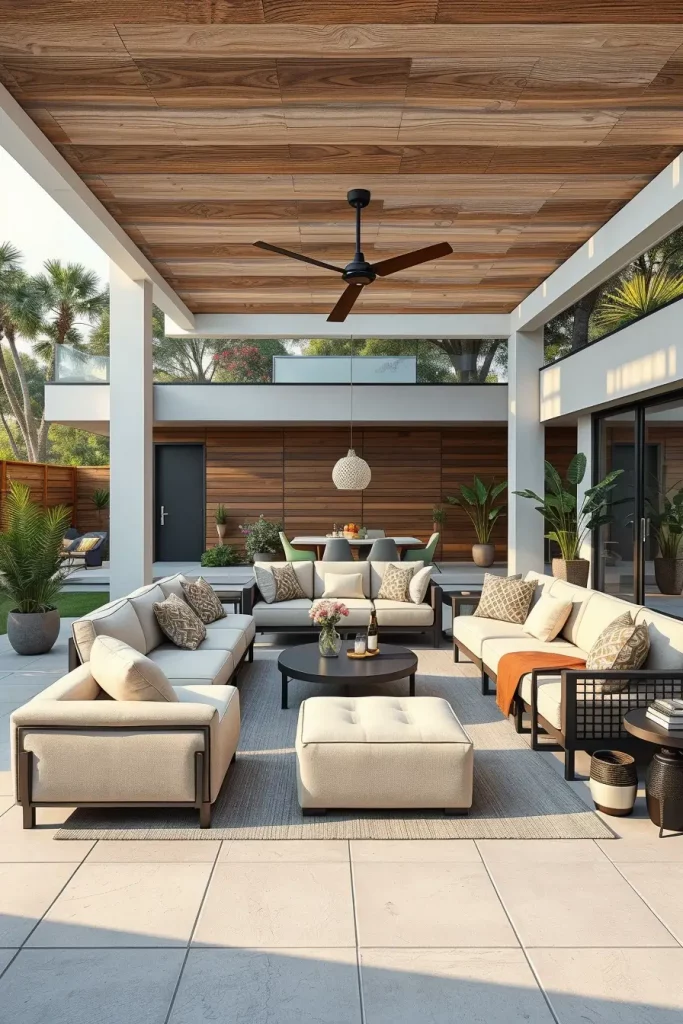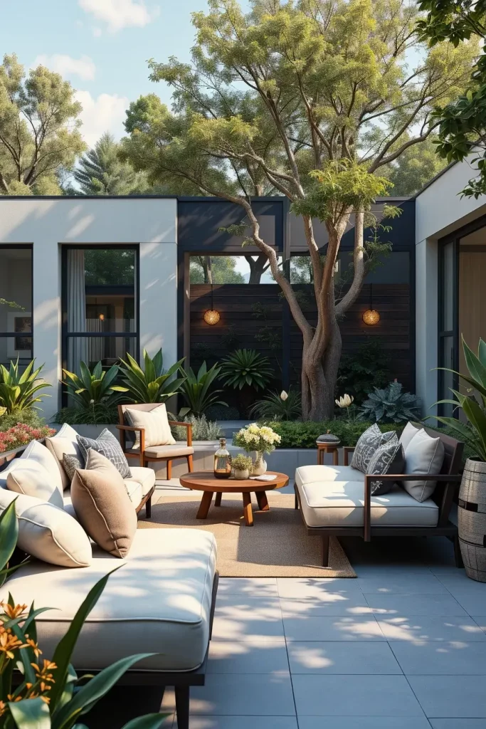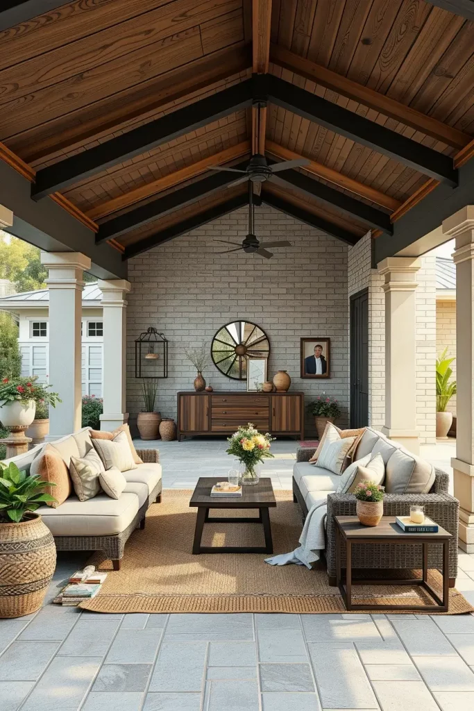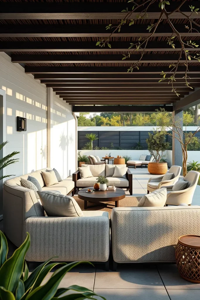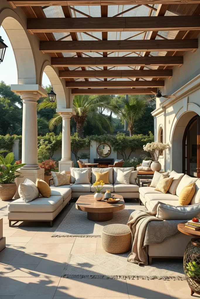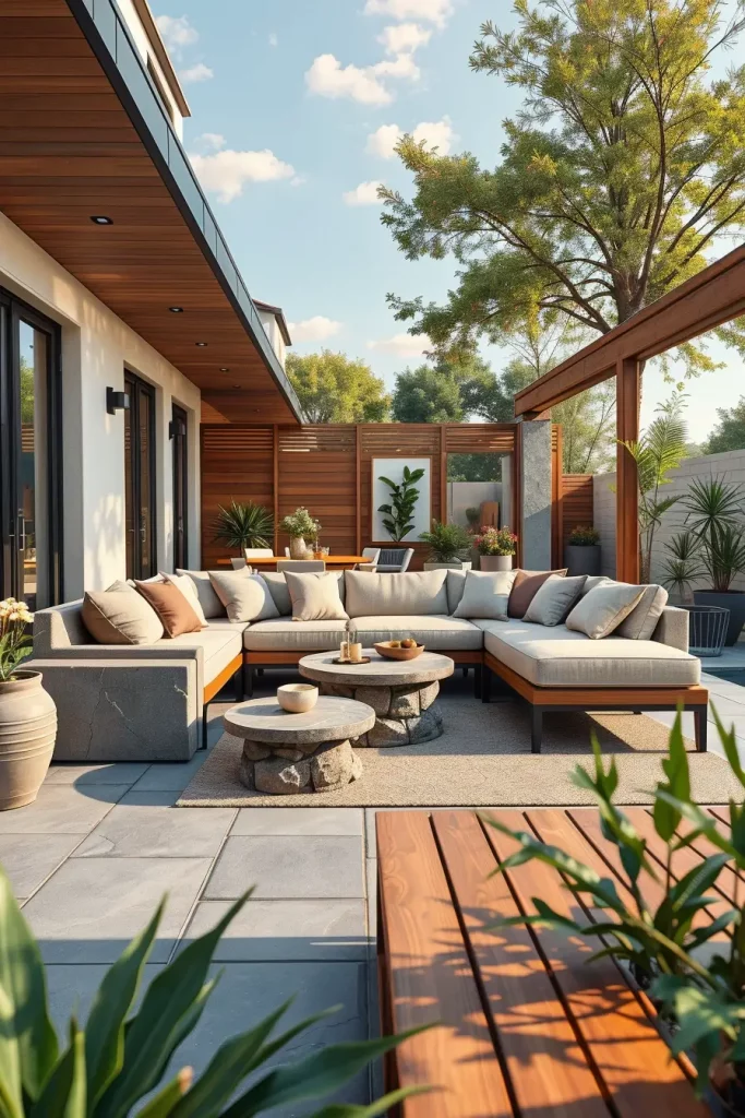 In my experience, designers highlighted by Architectural Digest emphasize that curved and enclosing furniture layouts promote a sense of comfort and connection, even in large outdoor spaces. I have seen this approach work especially well in homes where outdoor areas are used year-round, as the seating feels grounded and intentional rather than temporary.