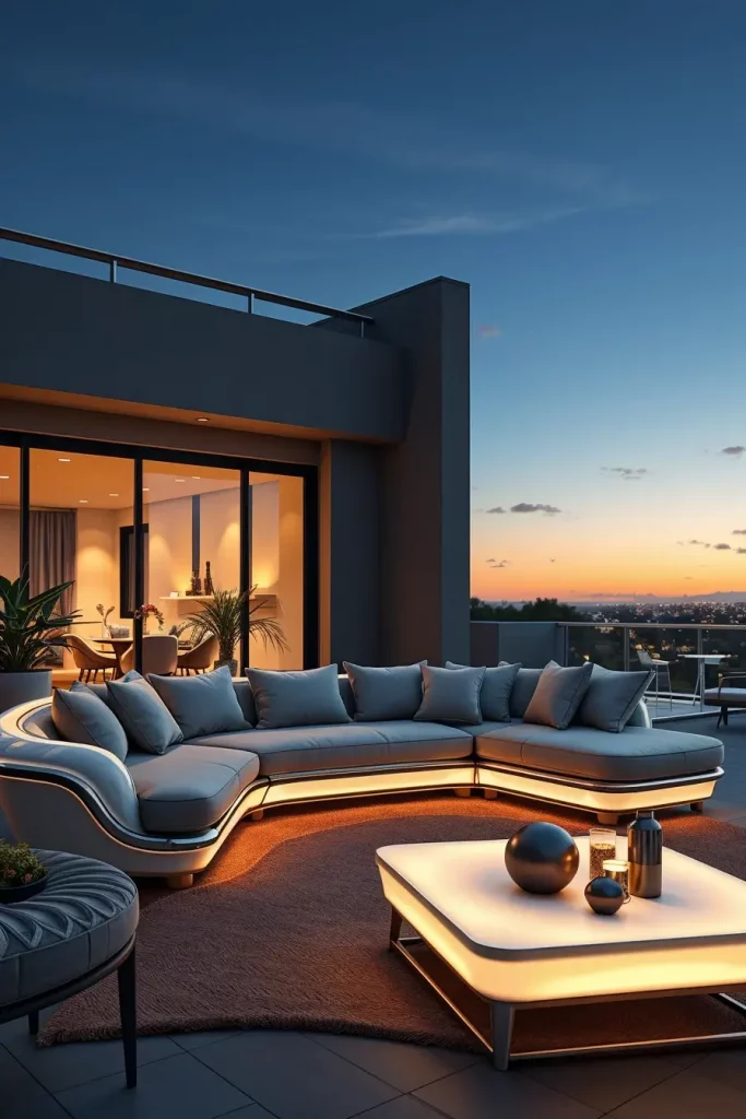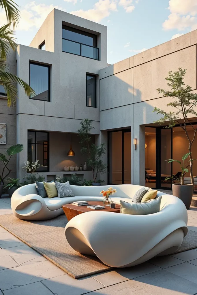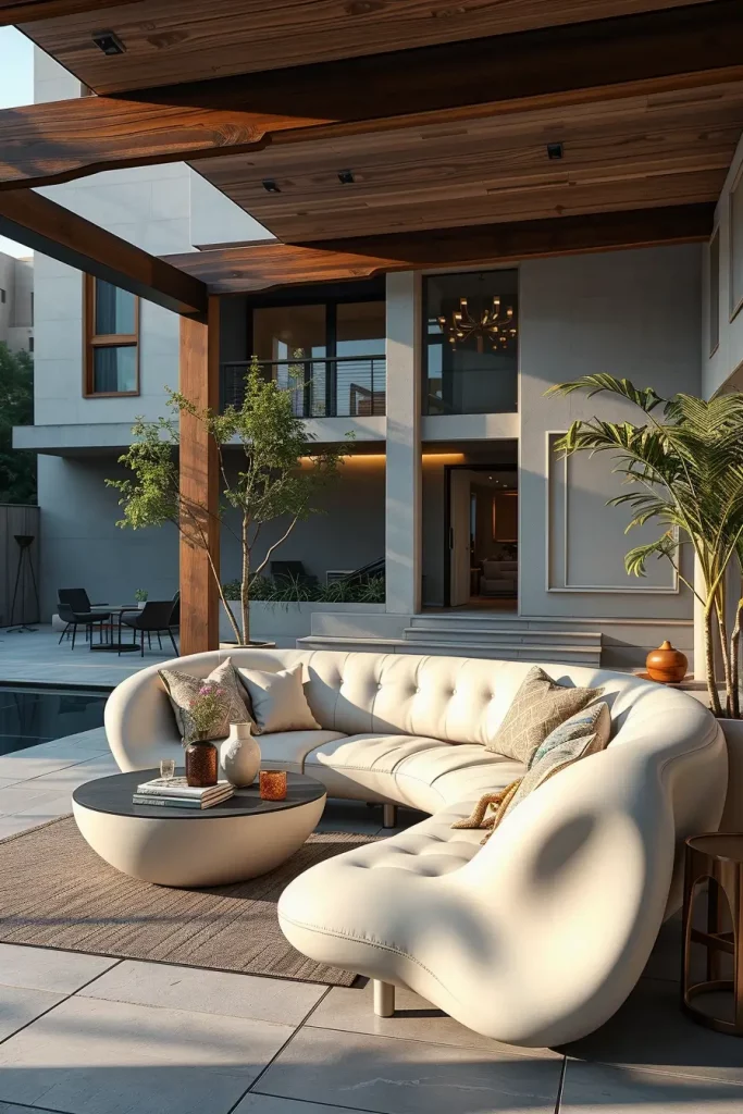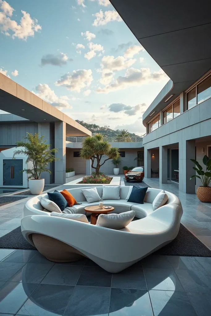 Futuristic outdoor sofas represent the boldest side of outdoor sofa ideas 2026, focusing on sculptural forms and advanced materials. I view these designs as statement pieces that define the entire outdoor setting rather than blending into it. They are especially effective in modern architectural environments.