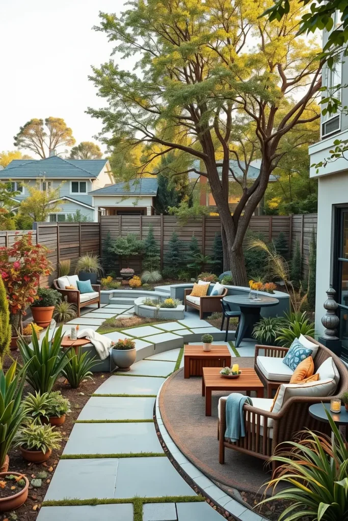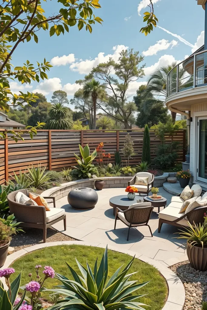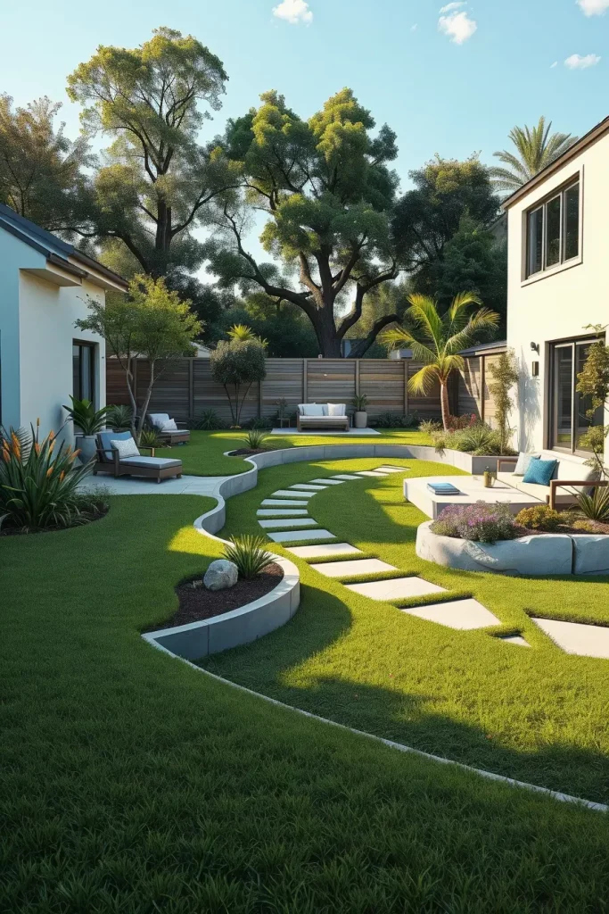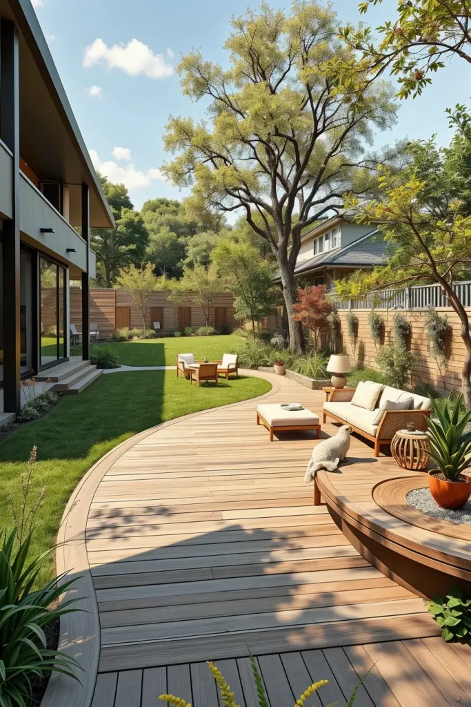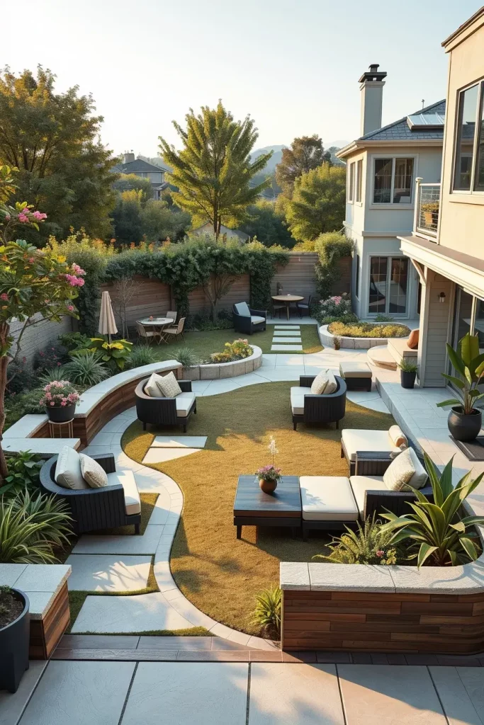 Modern Backyard Zoning With Curved Divisions