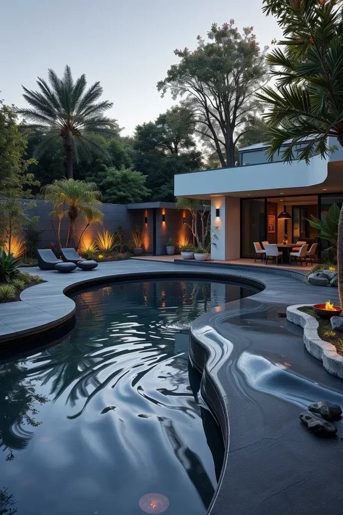 Designer Pool Landscaping With Fluid Geometry