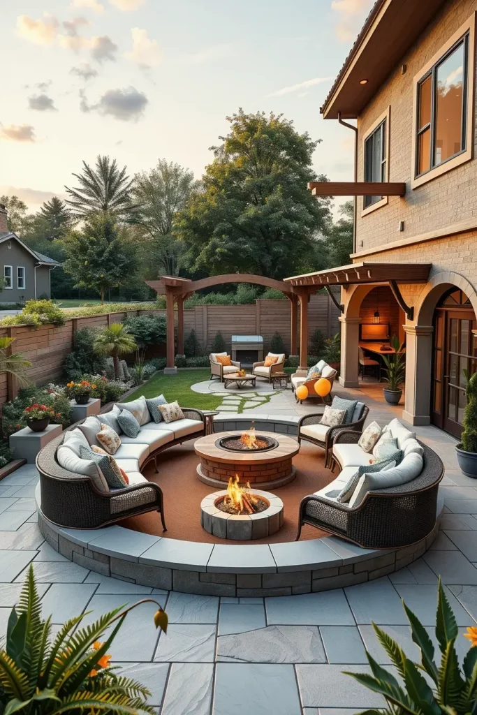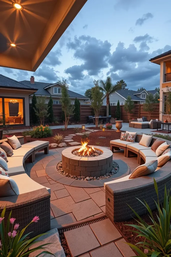 I usually select circular or oval fire pits made from concrete, stone, or metal, surrounded by curved built-in seating or modular outdoor sofas. The furniture layout encourages conversation while maintaining clear pathways and visual balance. I also prioritize materials that age well and remain safe under high temperatures.