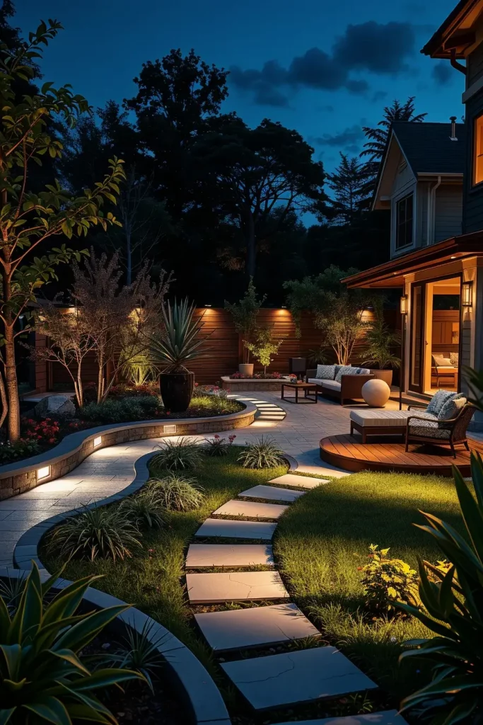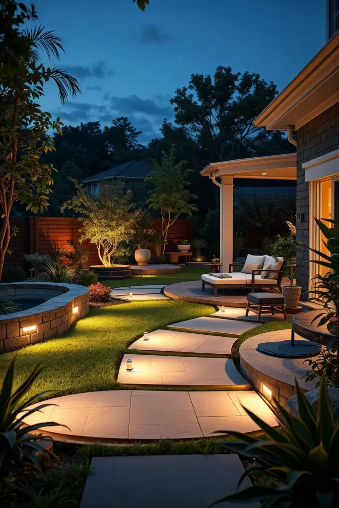 Lighting is where I see many backyards fall short, especially when curved designs are involved. In 2026, I focus on lighting strategies that highlight organic lines rather than flatten them. Well-placed lighting enhances safety, usability, and the architectural quality of the landscape.