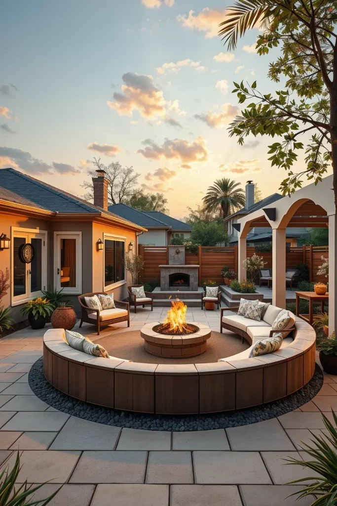 In my own projects, I follow advice often shared by Better Homes and Gardens, which recommends positioning fire features where they enhance social interaction without disrupting circulation. I’ve found that curved seating around a fire pit naturally supports this goal.