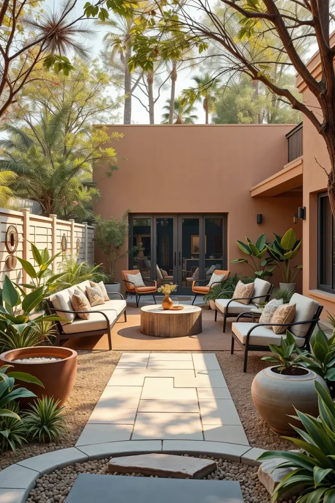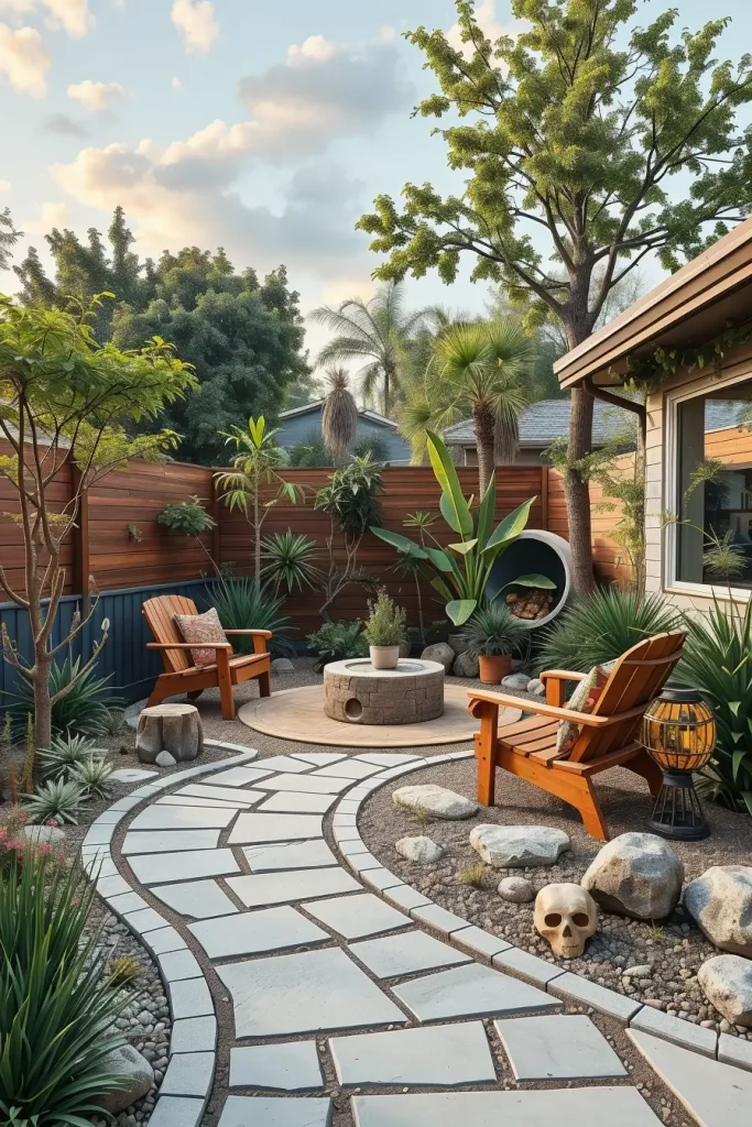 What could further enhance this section is the addition of subtle color variation within the hardscape materials. I recommend tonal layering rather than stark contrasts to preserve the calm, cohesive look that defines stylish and unique backyard landscaping.