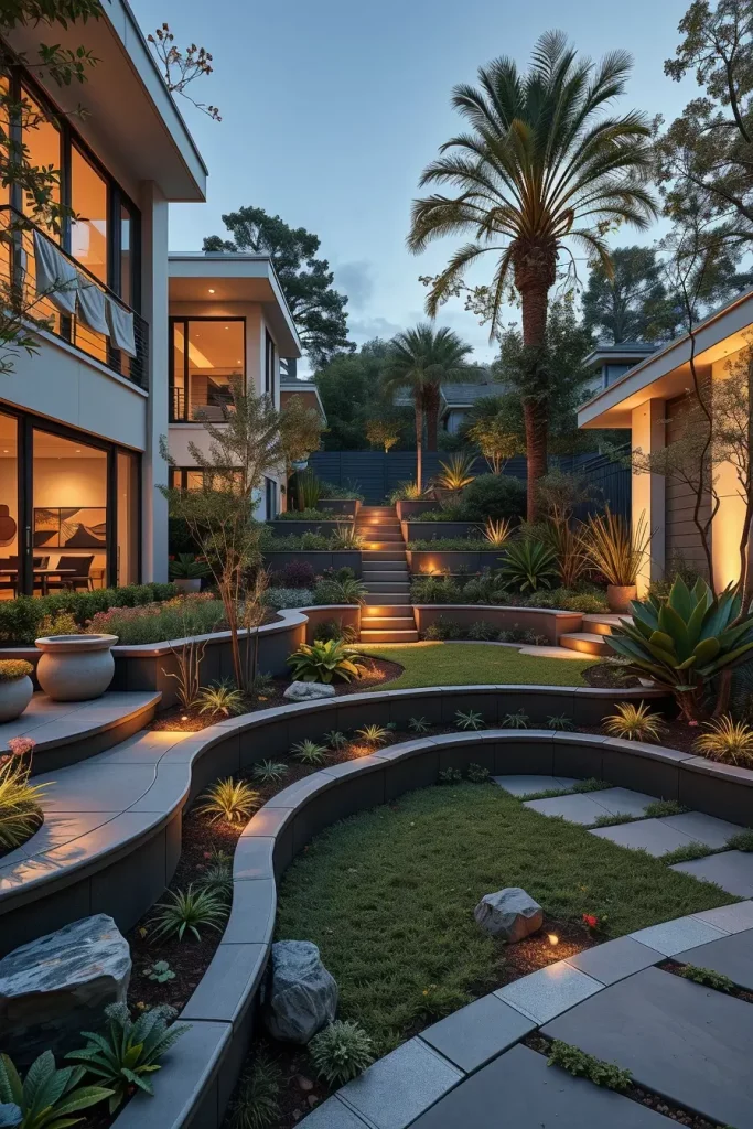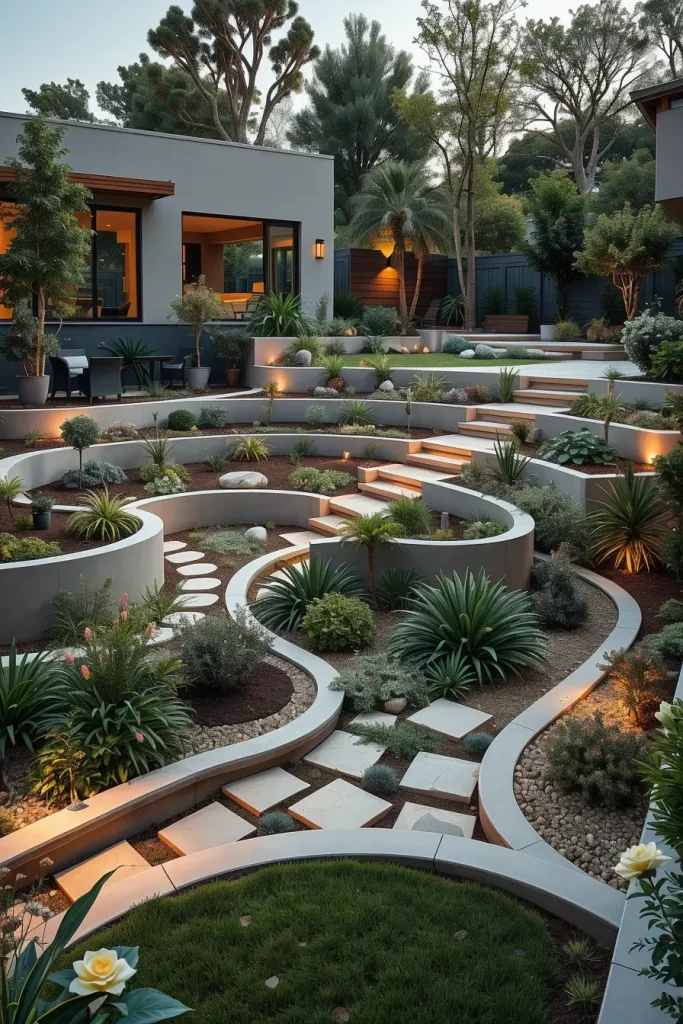 What I would add to complete this section is thoughtful irrigation planning. Layered landscapes perform best when watering systems are customized for elevation changes, ensuring plant health without compromising the clean, modern look.