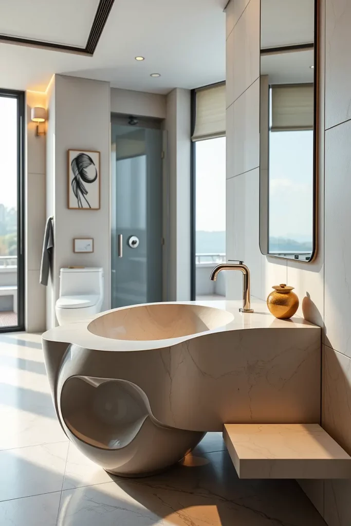 bathrooms influenced by curved, oval and stream design of thinking. These spaces are practical and emotionally involving through concentration on the careful design and proportionality, sculptural forms, and the elegant designer furniture. In the process of planning a master bathroom update or just considering the new design directions, I would love to have your views, inquiries, or experiences in the comments and carry on with the discussion.