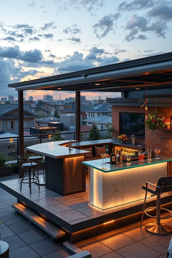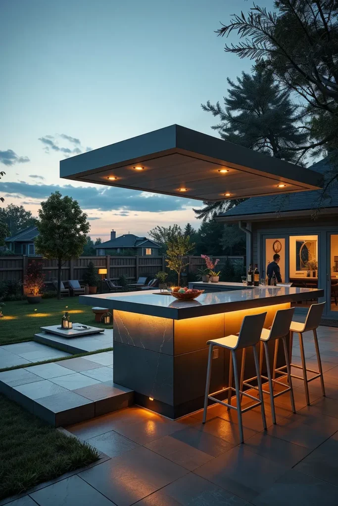 Rooftop-inspired bars bring an urban sensibility into residential outdoor spaces, which is why they remain a standout trend in outdoor bar ideas on backyard 2026. I approach this concept by focusing on clean lines, elevated platforms, and panoramic sightlines that mimic rooftop lounges while remaining grounded in a backyard context.