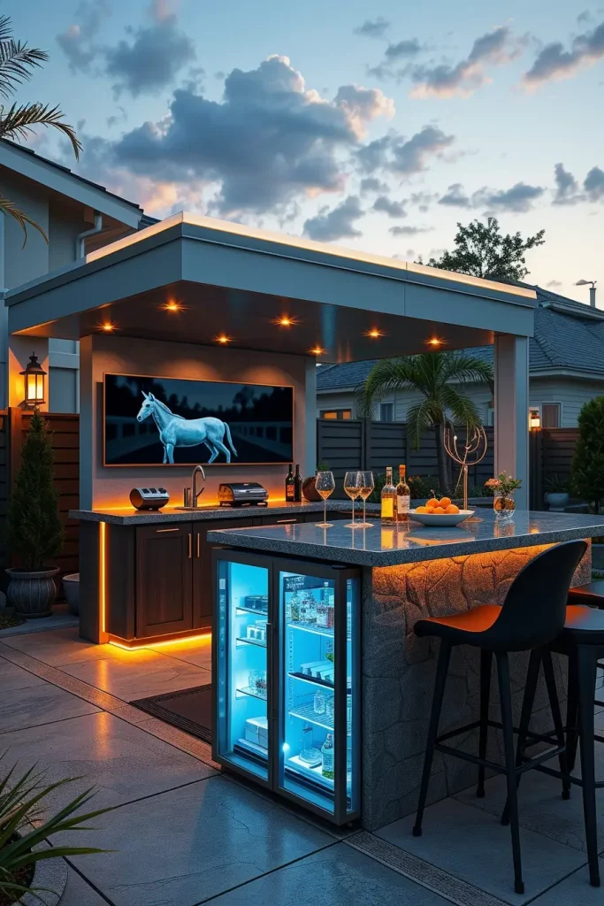 Smart technology is redefining what a modern outdoor bar can offer in backyard 2026. I design these bars to integrate technology seamlessly, enhancing convenience without disrupting the visual simplicity of the space.