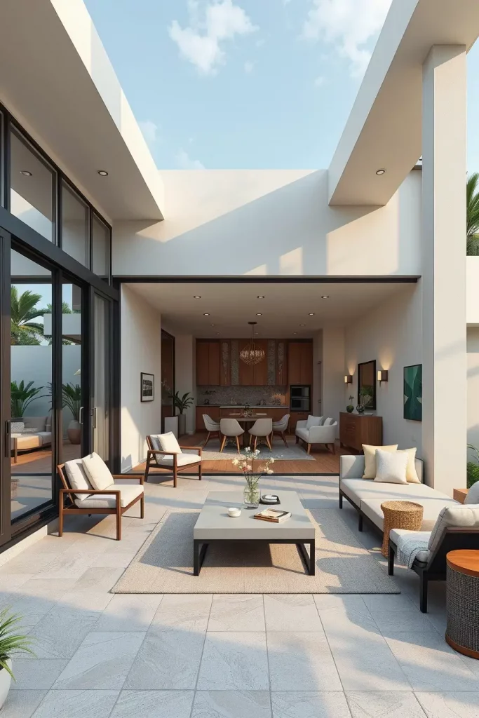 Blending indoor and outdoor design is one of the most influential outdoor patio ideas 2026, and I see it as a natural response to how people live today. The goal is to remove visual and functional barriers, creating a seamless transition where the patio feels like another room rather than a separate space. Large openings, consistent flooring, and aligned furniture layouts make this integration feel effortless.