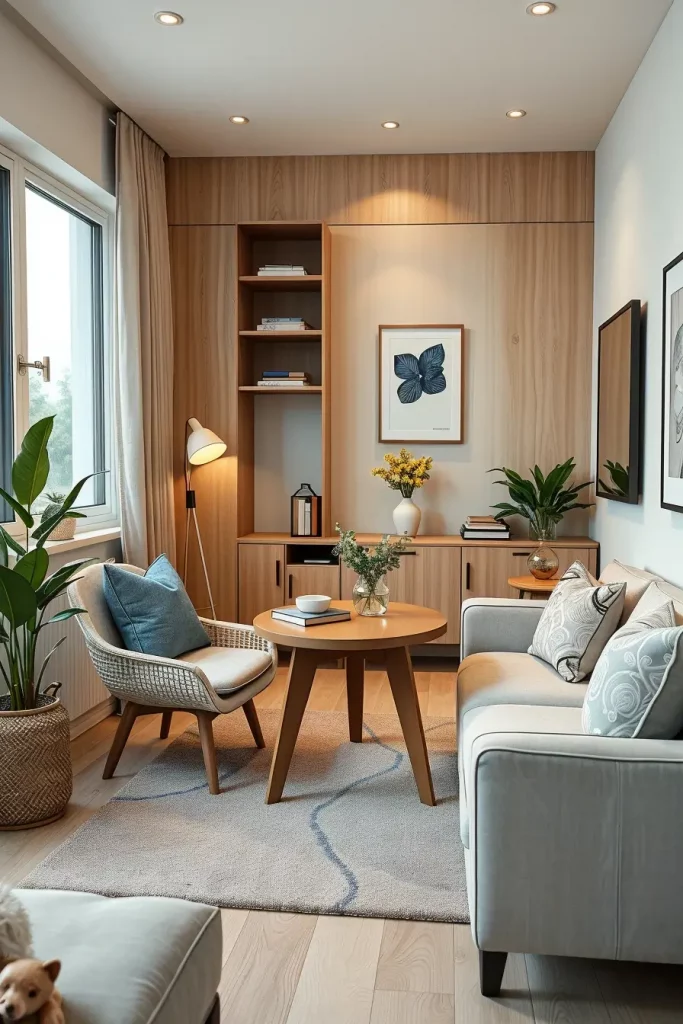 Small round tables are among my recommendations about the small living room in 2026. Their form will enable easier movement and avoid the danger of sharp edges in narrow places.
