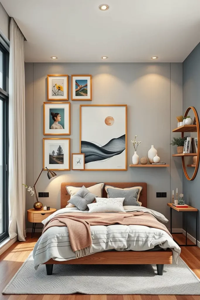In my case, the focus of a small bedroom can be a bold wall art that does not require too much furniture. Even the tiniest of spaces can be turned into a curated sanctuary as Domino magazine has noted, with the help of wall decor. I have witnessed clients transforming dull walls into a personalized artwork that transforms the mood of the room altogether.