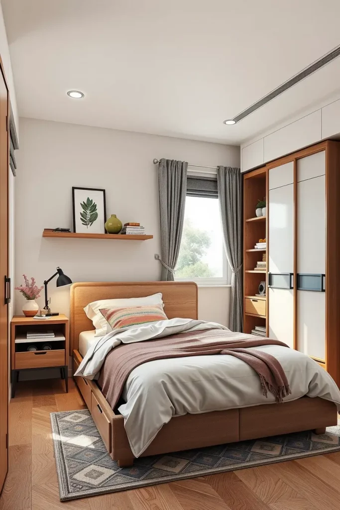 Storage is always the first thing I consider when I am designing small bedrooms. An uncluttered space makes a small space look bigger and I am busy thinking of creative methods of incorporating concealed storage without compromising on style. Beds with inbuilt drawers, under-bed rolling bins and wall mounted shelving units are the trend in 2026. These solutions allow one to have the necessities close without overcrowding the room.