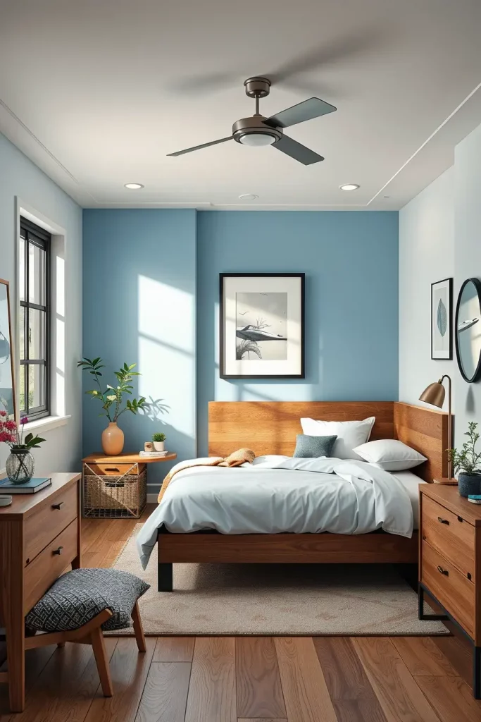 One of the strongest tools in the creation of the room atmosphere is color, particularly in smaller rooms. Small bedroom paint ideas in 2026 are centered on relaxing neutrals, gentle green, and light blue that give an impression of tranquility. I prefer the lighter shades to create the illusion of the walls being far apart and I add a bold accent wall to create character.