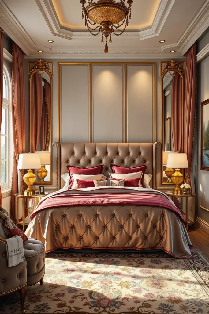 To create this effect, I add upholstered headboards, velvet bedding and high quality rugs when I desire this effect. Mirrored nightstands, lamps with gold accents, and smooth wardrobes with glossy finishes are the furniture options that help create a sophisticated look. The minor details such as silk curtains or designer light fixtures can upgrade the overall appearance.