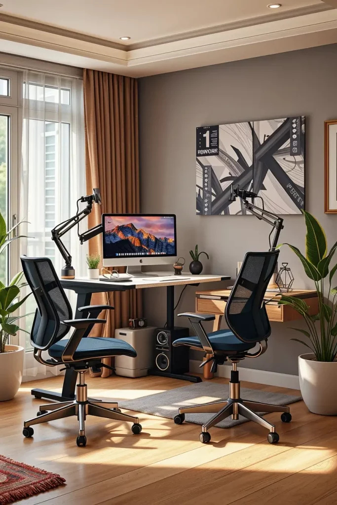 I add adjustable chairs, monitor holders, ergonomic keyboards, and footstools to facilitate the neutral position of the spine. All products contribute to the minimization of transduction on the neck, shoulders, and lower back, and it seems that posture correction is easy.