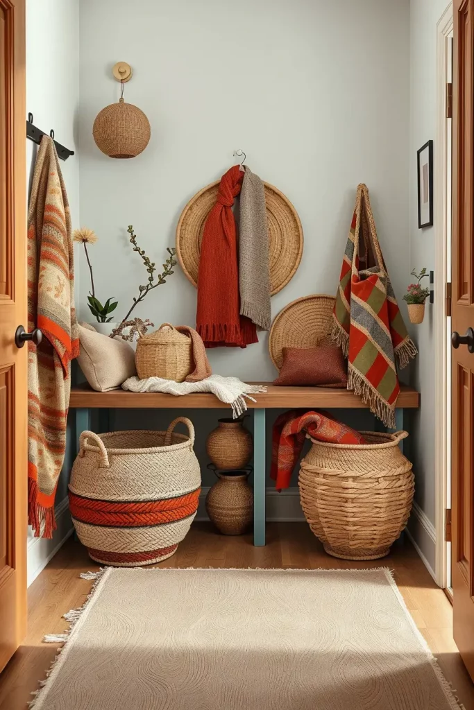 The fall 2025 brings together functionality and design with textured storage and stylized baskets. Hallways tend to have little useful storage, and beautiful woven, knit, or felted baskets are useful to clear the clutter and add to the seasonal theme. Imagine rich textures, earthy colors and smooth finishes.