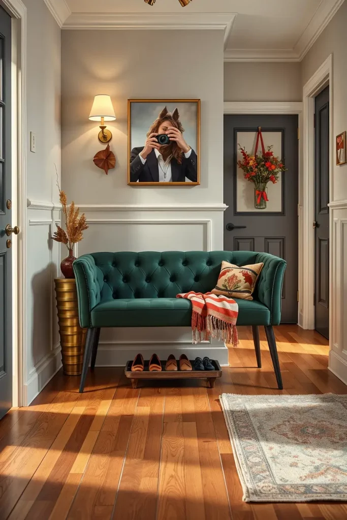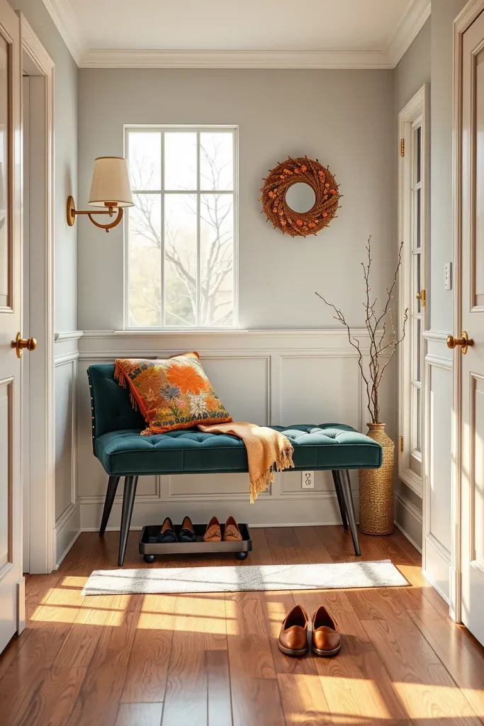 Hallway seating is luxurious and practical, and 2025 introduces velvet benches as an all-time favorite fall decor. Velvet is not only soft to the touch, and luxurious, but it also takes autumn light so well, particularly in deep jewel tones or soft earthy neutrals.