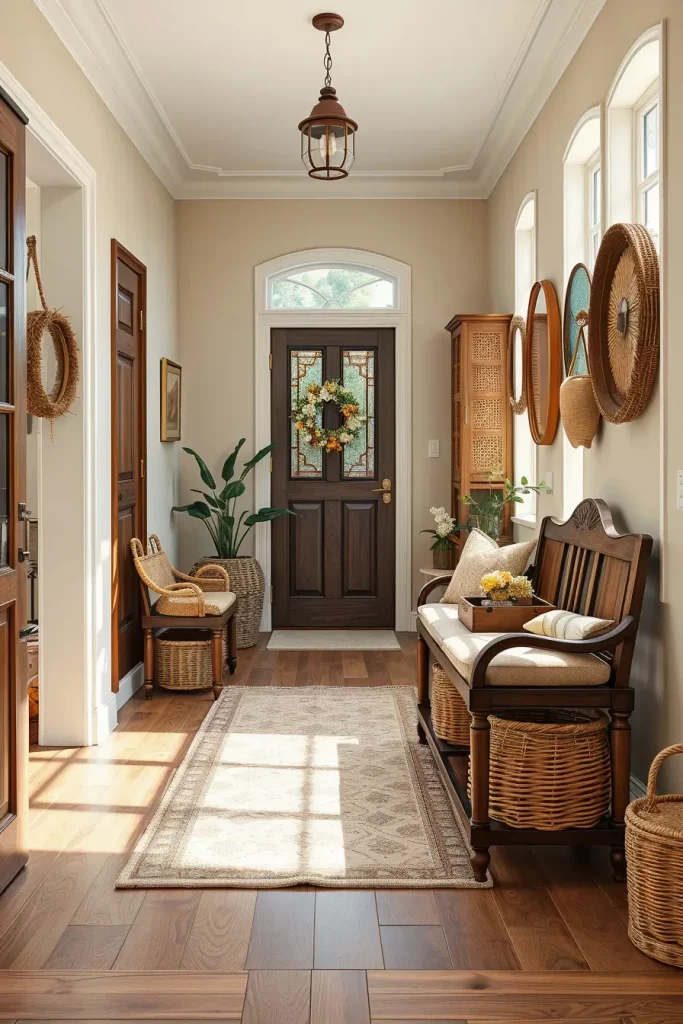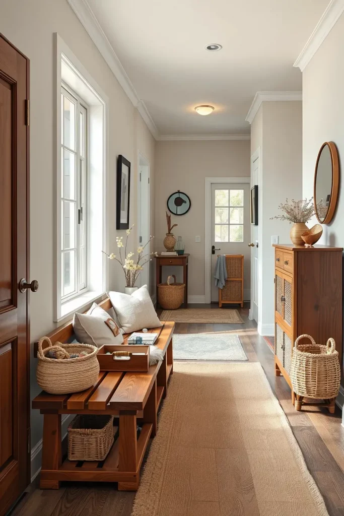 There is nothing more fall than natural tactile materials. Organic textures, namely wood, rattan, and leather, are the trends in decor of the hallways in 2025. These are the features that make spaces more real and not too sterile. I adore a solid wood bench with woven rattan baskets below and a narrow leather tray on top of an entry table to catch mail or keys.
