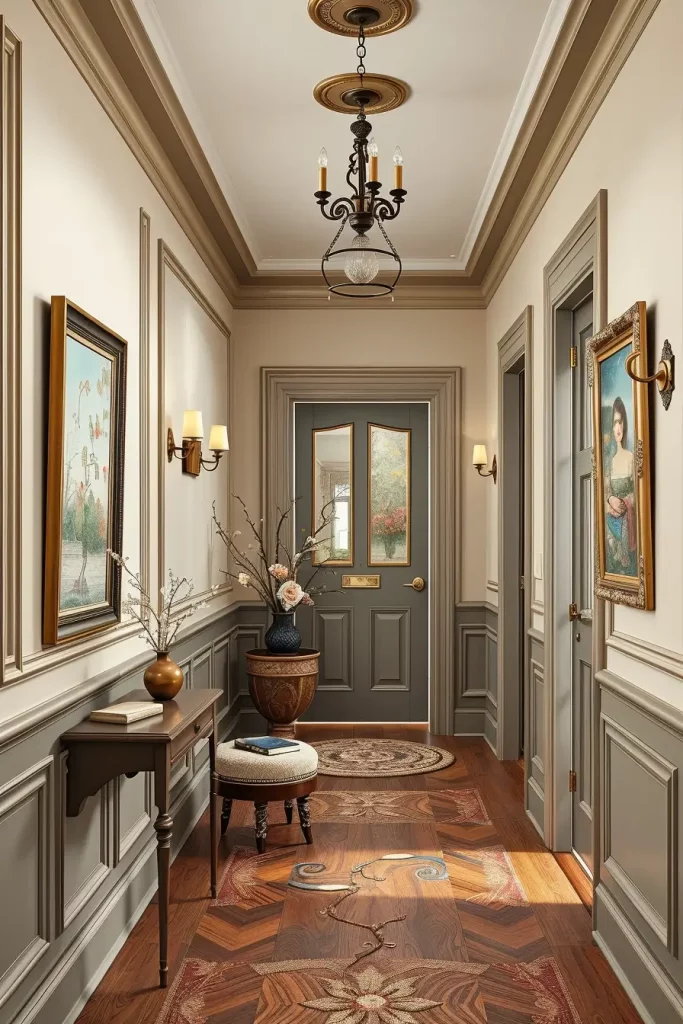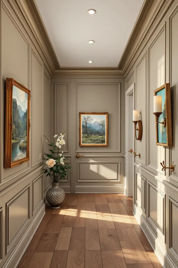 One of the most transformative things you can do to a hallway is wall molding and trim, and in 2025, painting it in fall colorways is a trend. I tend to recommend this update to give definition and structure to otherwise blank walls in the hallway. To introduce the autumnal mood to your house without overwhelming the place, apply autumnal colors, such as warm taupe, dull terracotta or olive green.