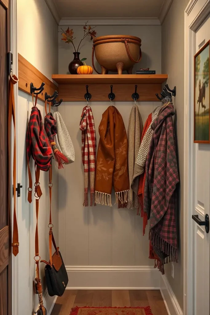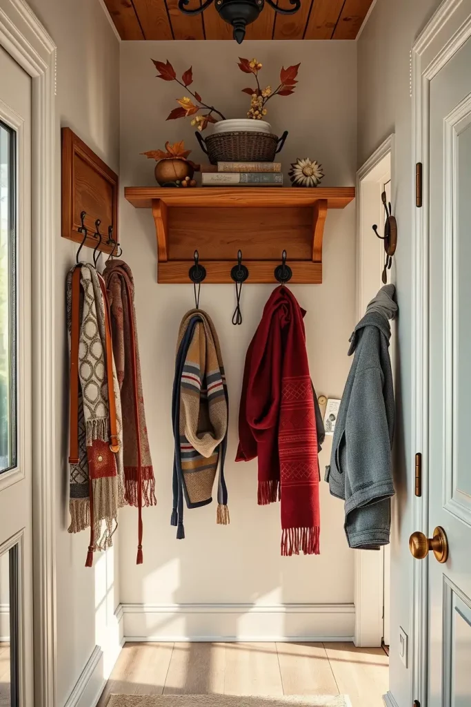 In fall, the visitors tend to come in jackets, scarves, and umbrellas. That is why I think that it is worth upgrading to fashionable hooks and hardware that provide design and seasonal functionality. Wall-mounted systems with strong brass or black metal hooks are not just practical—they’re a chance to inject character into your hallway.