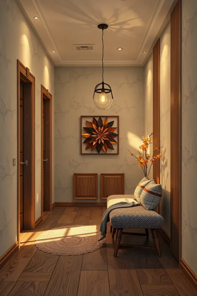 I am also adopting a higher level of hallway decoration this fall by incorporating classy wallpaper patterns along with selected wall arts. Soft gold or muted rust or subtle leafy wallpapers provide a rich but comfortable background. They can be used as a center of attention and provide depth even in a narrow corridor when used properly. Such a feature wall does not only delimit the space, but it also adds depth to the entire interior design.