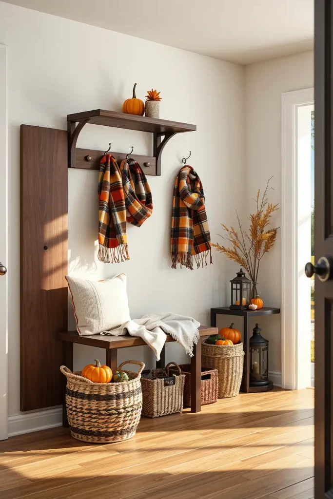 To take this concept one step further, attempt to incorporate wall-mounted shelves that rotate with small seasonal decorations. Make the base decoration stable and leave the interchangeable fall items to steal the show.