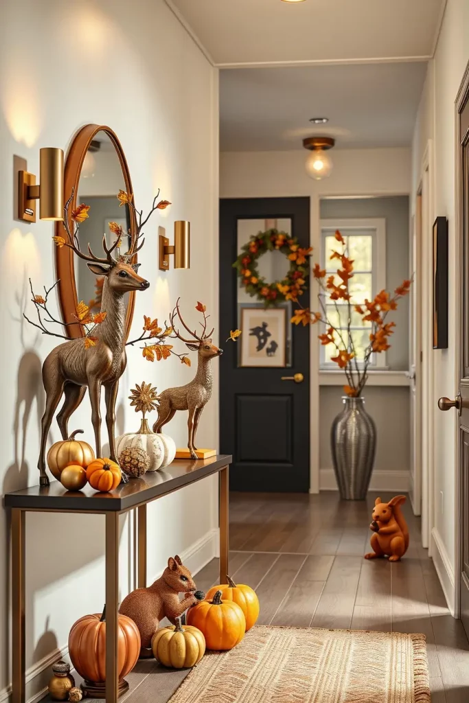 Sculptures and figurines are some of the simplest methods of incorporating seasonal personality to your hallway. In 2025, designers have gone past traditional scarecrows and ceramic turkeys to adopt contemporary, stylized decor in stone, ceramic, or matte metals. These accents can subtly refer to autumn without being kitschy and overbearing. They are particularly useful when put on shelves, side tables, or console tops.