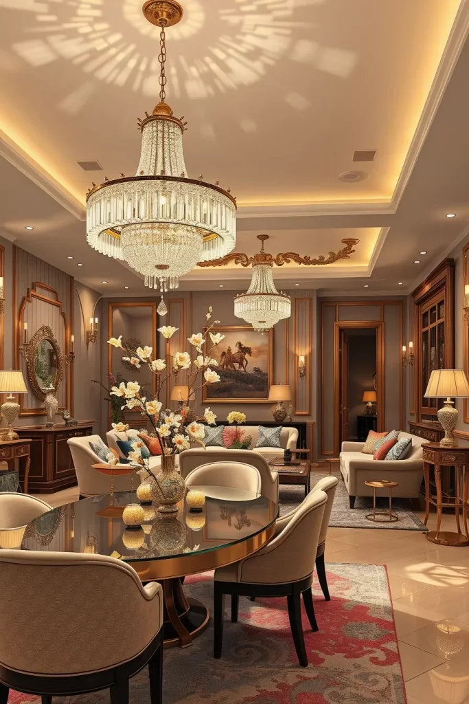 Lighting in maximalist home design is not just functionality, it is sculpture, statement and atmosphere in one. I use chandeliers, tiered pendant clusters, or even oversized floor lamps as important tools to add personality to a room. The fixtures can also serve as works of art.