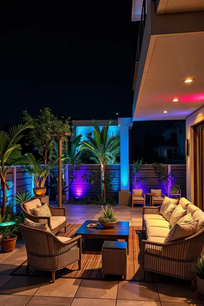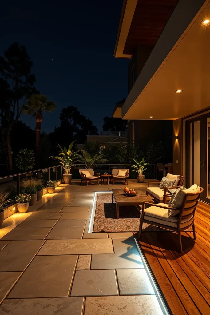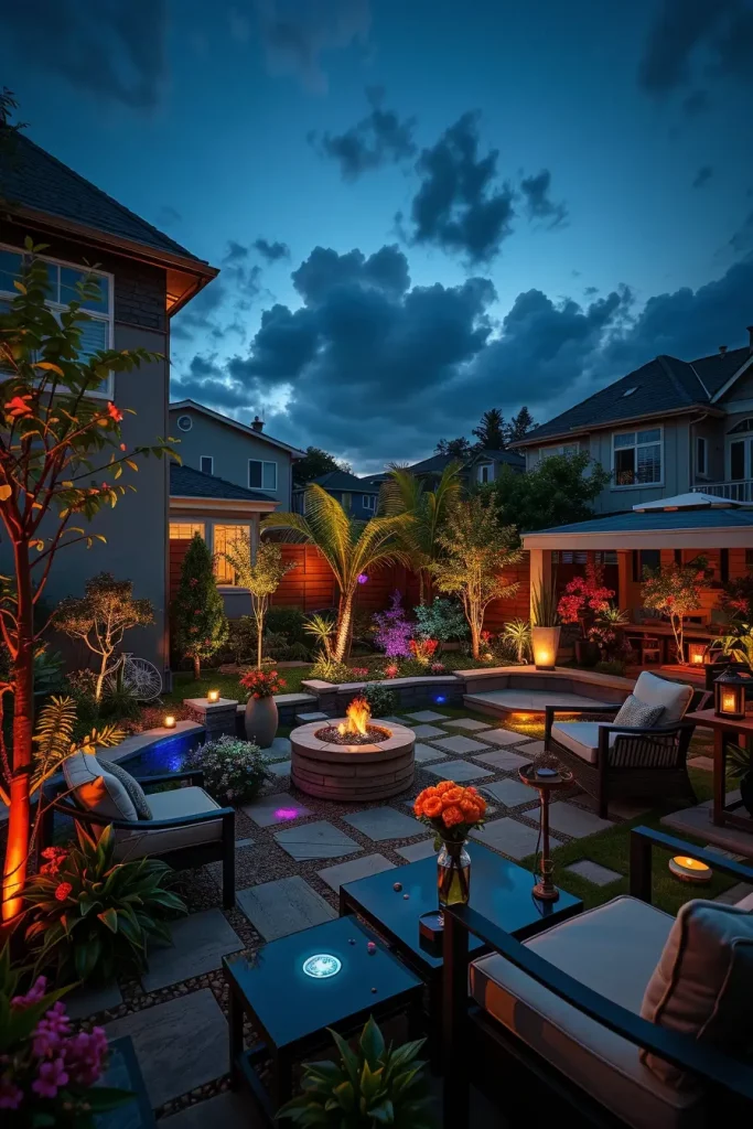 These systems often include sensors, programmable LEDs, and responsive controls integrated into pathways, patios, and seating areas. I pair them with flexible outdoor furniture arrangements and open layouts that encourage interaction. The lighting responds naturally to how the space is used.