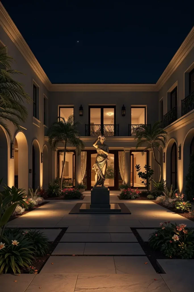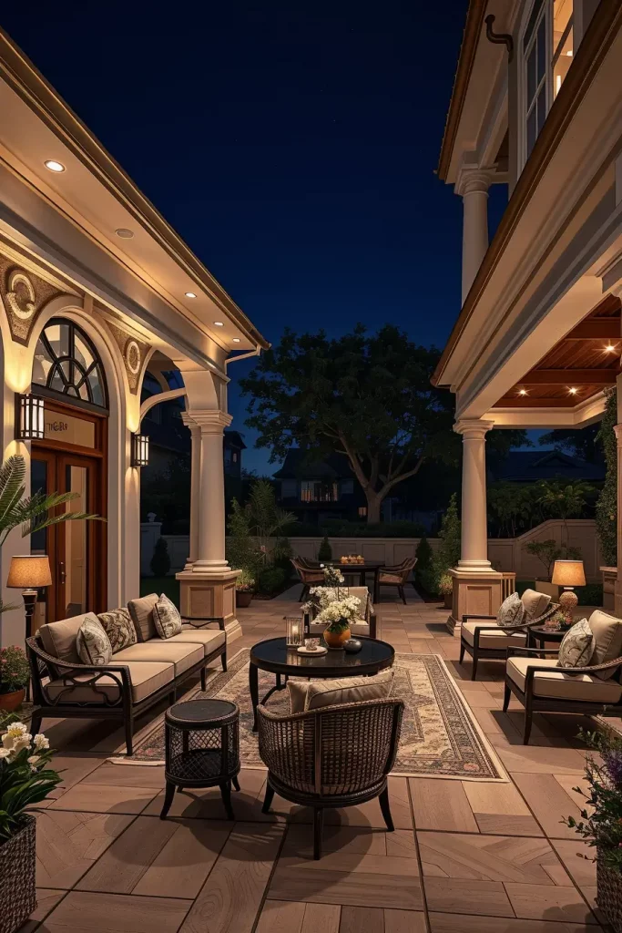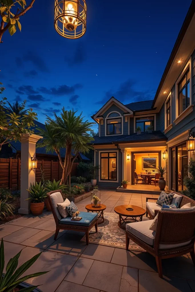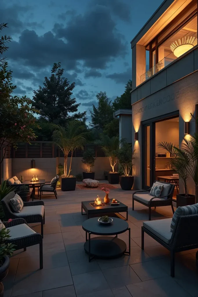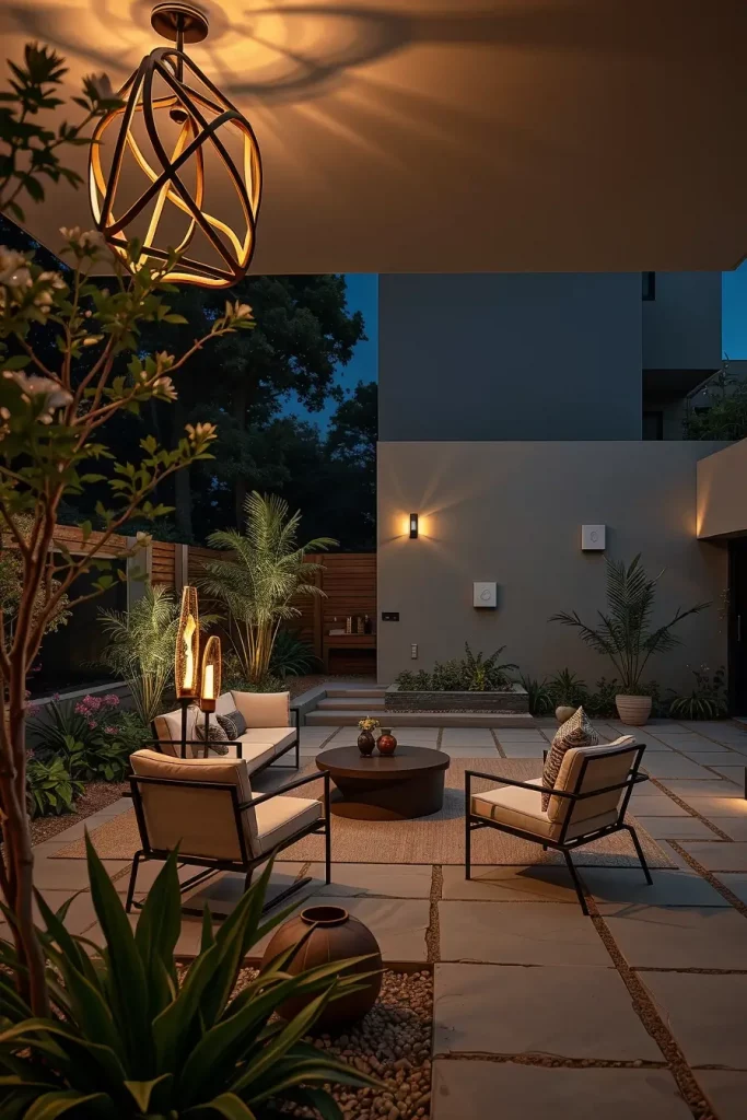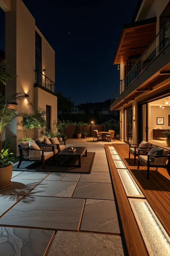 In practice, this means integrating overhead fixtures, wall-mounted lights, and ground-level illumination around furniture, steps, and architectural features. Each layer serves a distinct purpose, from general visibility to highlighting textures and materials.