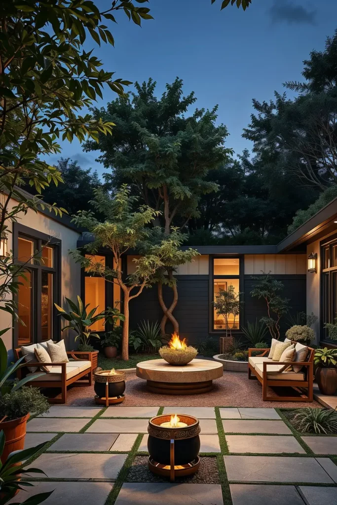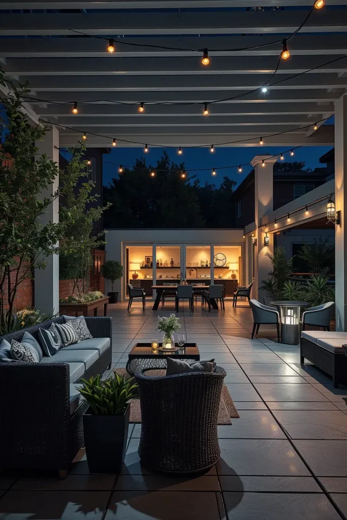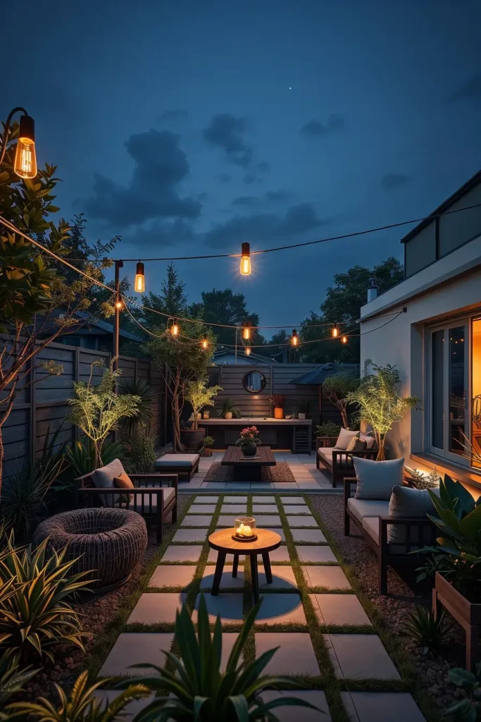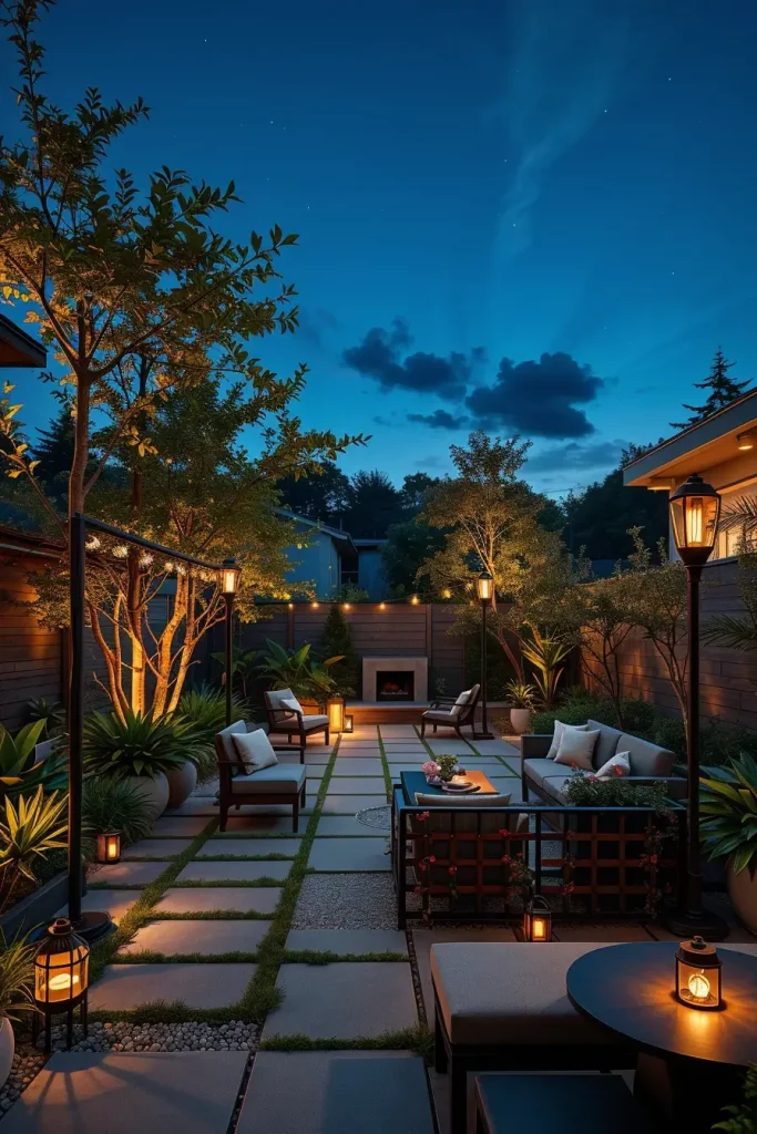 Linear lights, wall washers, and recessed fixtures work alongside structured outdoor furniture and built-in features. I align lighting with pergolas, steps, and seating platforms to reinforce architectural order. This approach enhances both aesthetics and wayfinding.