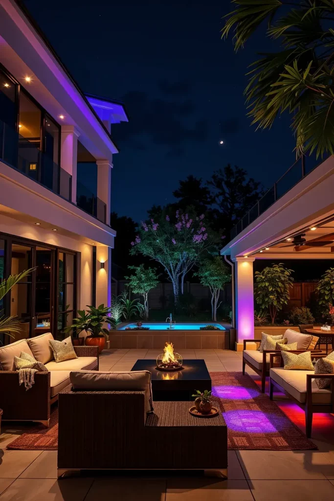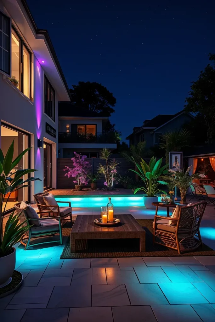 Color-changing LED lighting continues to evolve as a defining trend for 2026. I use these systems to offer flexibility and personalization without compromising design integrity. Their practicality lies in allowing one outdoor space to serve multiple moods and occasions.