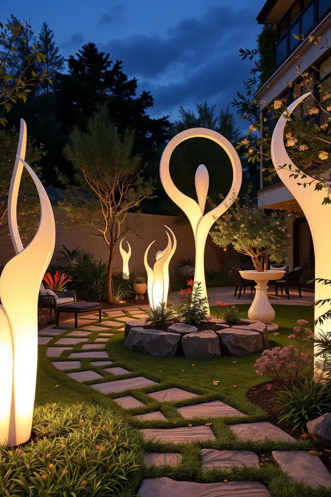 To enhance these concepts further, I recommend pairing unusual lighting with subtle pathway illumination to ensure usability remains uncompromised while the artistic statement remains intact.